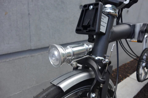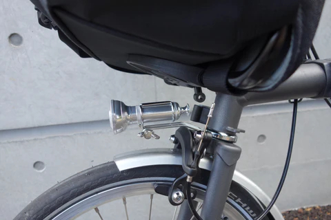 Because the structure of Moulton's front fork suspension and vintage lights are not compatible. For mounting on the front fork Not recommended Please attach to places other than the front fork.